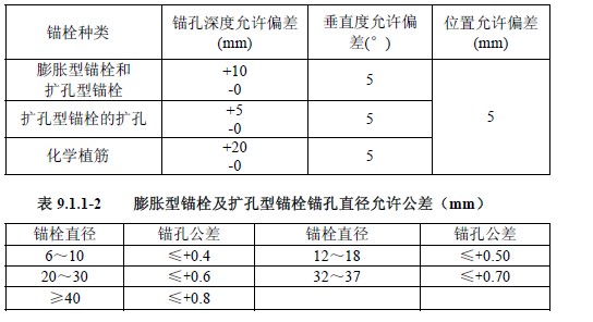1、锚孔的位置、直径、孔深和垂直度,当采用预扩孔扩孔型锚栓时,尚应检